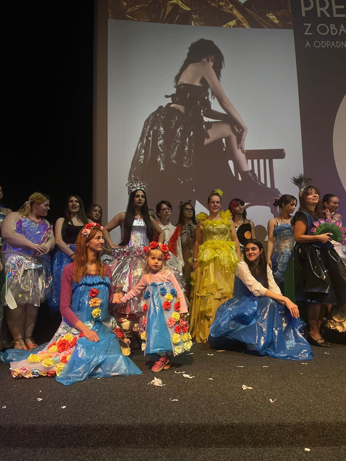 Naše škola se opět vrátila do kina Máj, kde uspořádala jedinečnou módní přehlídku vytvořenou právě z těchto netradičních materiálů. Celkem 70 modelů bylo představeno téměř 400 návštěvníkům, kteří mohli obdivovat kreativitu, nápaditost a zručnost našich studentů.