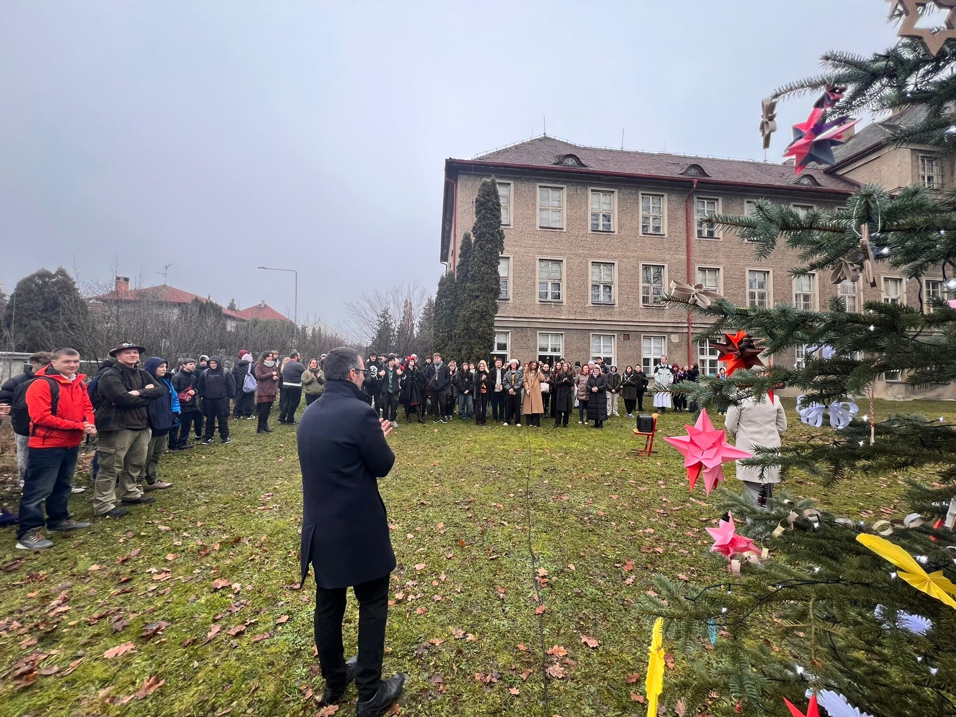 V závěru příjemného odpoledne jsme se znovu setkali u vánočního stromečku, který slavnostně rozsvítil náš anděl. Nechybělo ani vánoční přání a poděkování za uplynulý rok od pana ředitele. Předvánoční týden tak důstojně uzavřel rok plný práce a společných zážitků a naladil všechny na blížící se svátky.