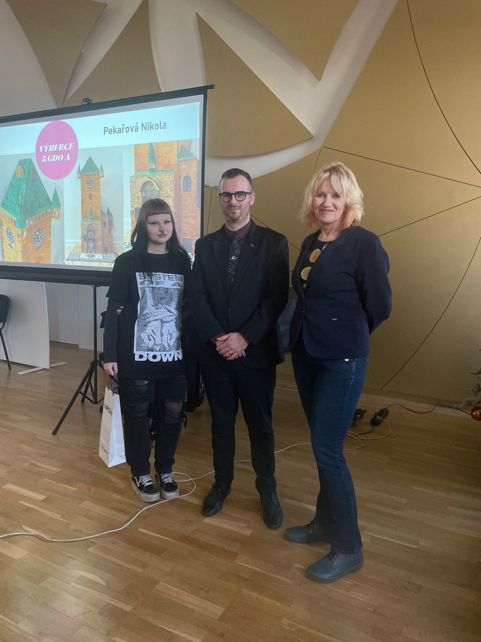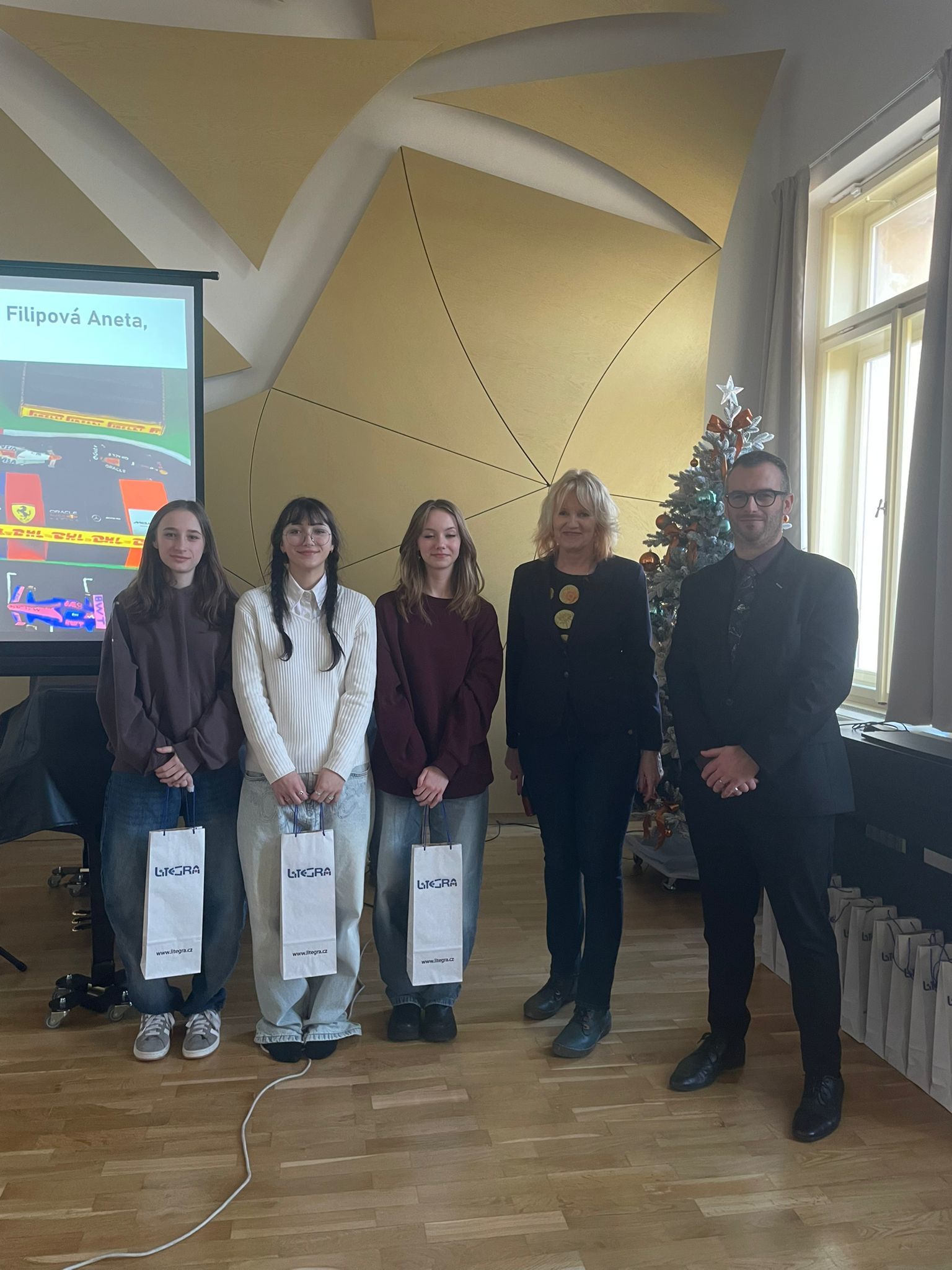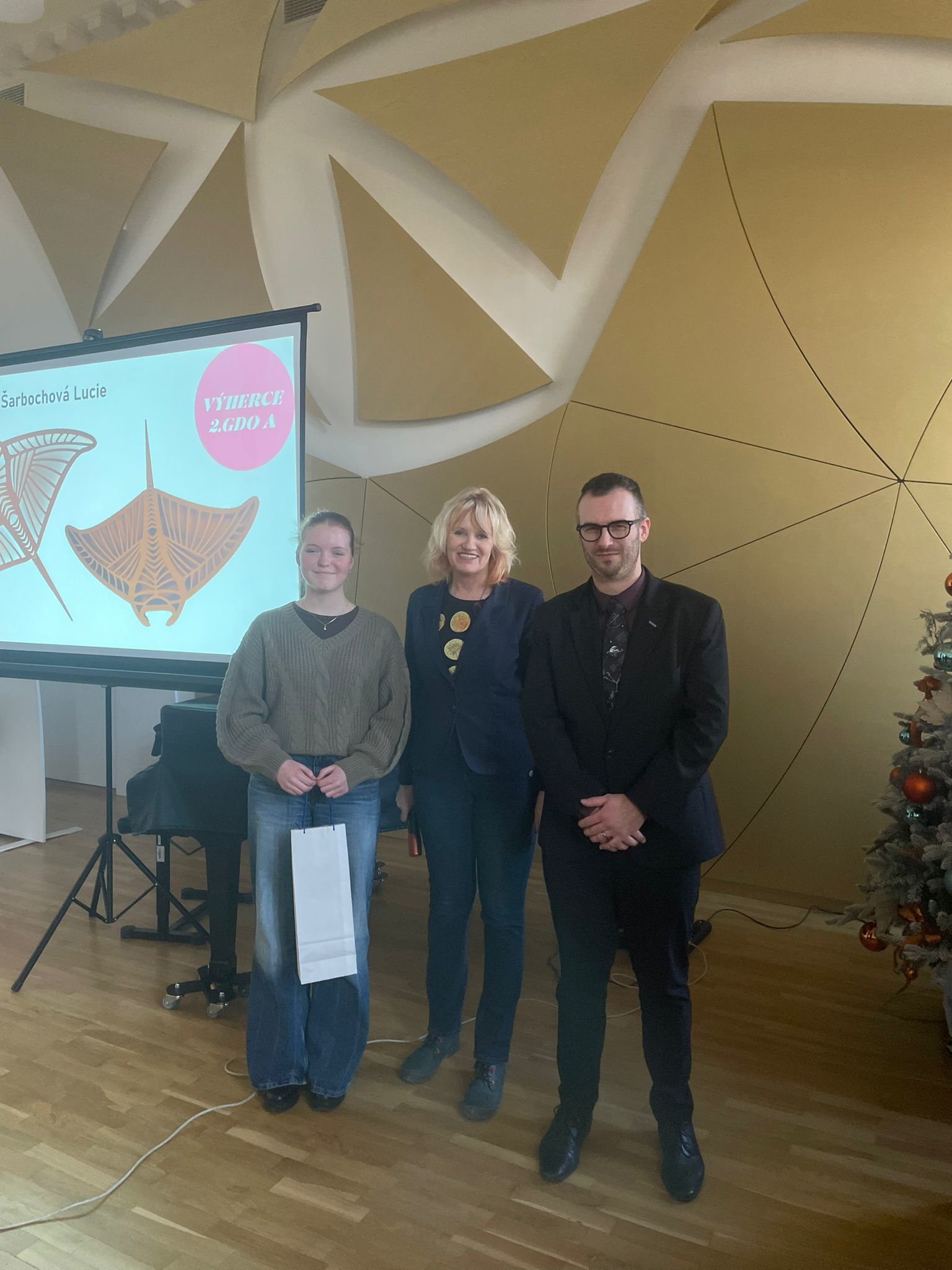 Vyhlášení se zúčastnil také pan ředitel školy, který ocenil nasazení žáků i pedagogického týmu a zdůraznil význam klauzur jako důležité součásti odborné přípravy. Společně s Ing. Janou Žižkovou, garantkou oboru Grafický design obalů, poté slavnostně vyhlásili žáky, jejichž projekty patřily k nejúspěšnějším a nejlépe hodnoceným.