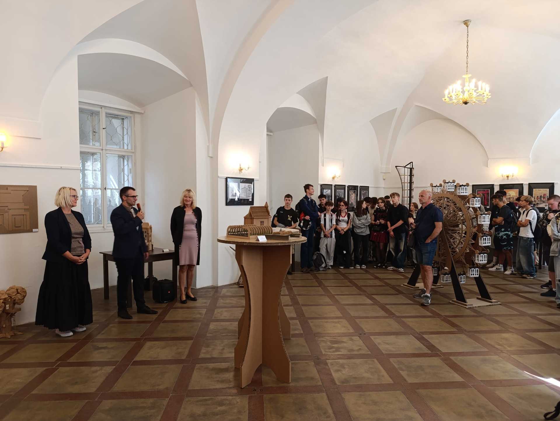 Minulý týden proběhla vernisáž k výstavě studentských prací s názvem Design, stavby a vlnitá lepenka, která je umístěna v krásných prostorách zámku v Libochovicích. Slavnostního zahájení se zúčastnil pan ředitel, naši učitelé, paní kastelánka a samozřejmě i žáci naší školy.